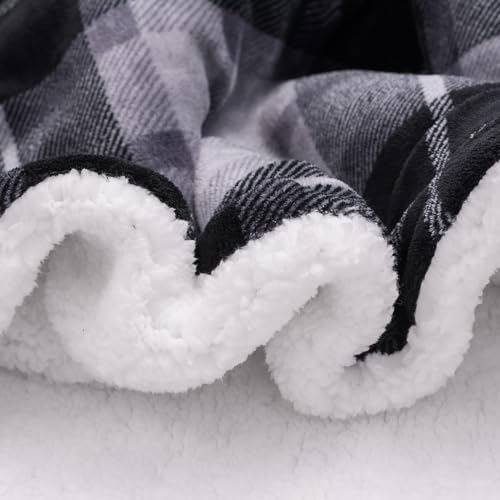 SOCHOW Sherpa Plaid Fleece Throw Blanket, Double-Sided Super Soft Luxurious Bedding Blanket 127cm×150cm, Grey