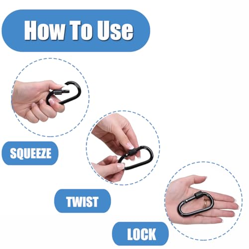 - Ideal for a multitude of applications, these carabiners can effortlessly hold your keys, flashlights, water bottles, and more, making them perfect for outdoor enthusiasts and everyday users alike. Attach them to your backpack or handbag, and you'll never have to rummage through your bag again!