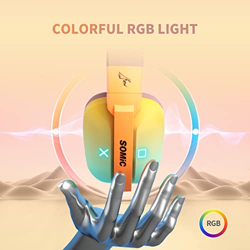 SOMiC G810 Wireless Headset 2.4G Low Latency Headset for PC PS4/5 Laptop, Bluetooth 5.2 Wireless Headphones with Built-in Mic, 50H Playtime, RGB Light (For Xbox Only Work in Wired Mode)
