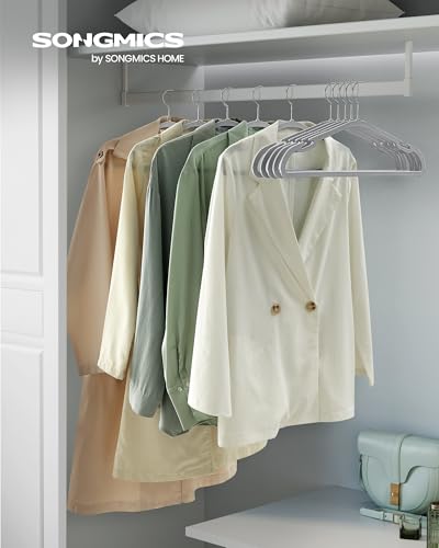 - Introducing the SONGMICS Coat Hangers – your ultimate solution to a clutter-free wardrobe! With a sleek design that measures just 0.5 cm in thickness, these hangers efficiently maximise your closet space, allowing you to store more of your favourite garments without compromising on style or accessibility. Say goodbye to overcrowded wardrobes and hello to an organised, tidy space!