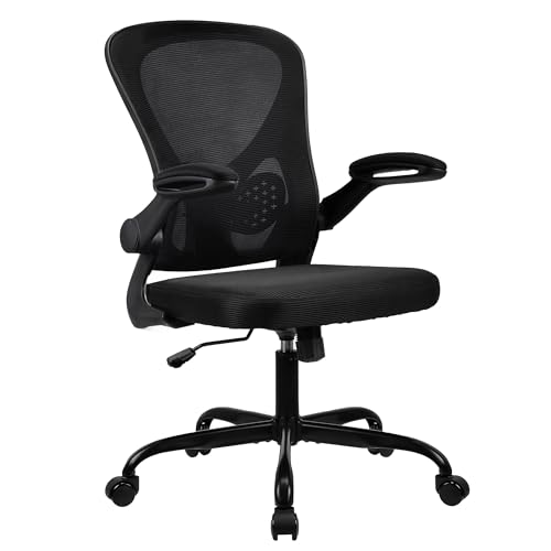 T-THREE. adjustable office chair,ergonomic mesh swivel chair,office chair,desk chair,lumbar support,height adjustable,360°swivel rocking function,with 90° flip armrests,mesh back office chair (Black)