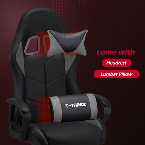 - Introducing the T-THREE High-Back Ergonomic Gaming Chair – the ultimate blend of style, comfort, and functionality designed for both gamers and professionals alike. This sleek grey chair boasts an ergonomic design that perfectly aligns with the natural curve of your lower back, ensuring you stay comfortable and supported during those long hours at your desk. Whether you're immersed in an intense gaming session or tackling work projects, this chair protects your back and waist, allowing you to focus without discomfort.