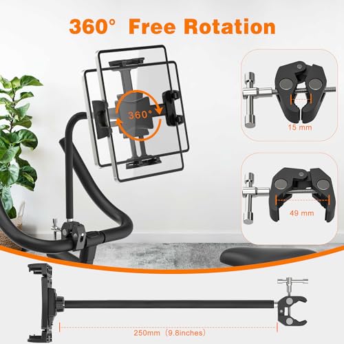 Tendak Exercise Bike Tablet Holder, Gooseneck Adjustable Treadmill Spin Bike Tablet Mount, Microphone Stand Tablet Holder Compatible with iPad Tablet Smartphone 4.7-12.9 Inches