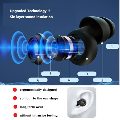 ThamesComforts Ear Plugs - 45dB Noise Cancelling, earplugs with 6 Custom Fit Tips (S/M/L), sleep ear plugs Perfect for Travel, Concerts, Work & Nightlife