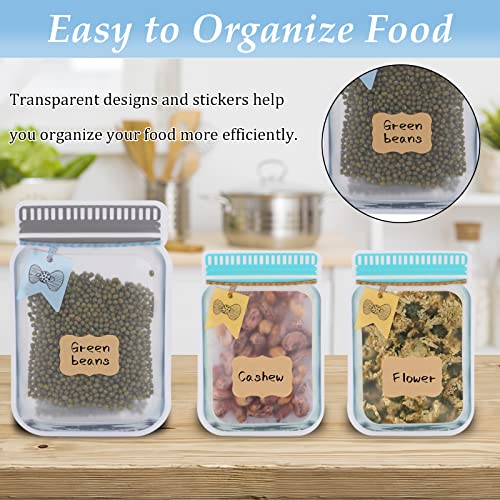 Spice Storage Bags - Tikplus 20PCS Reusable Food Bags, 2 Sizes Plastic Mason Jar Pouches 20pcs Lables, Leakproof Ziplock Seal Bag for Herb, Snack Container