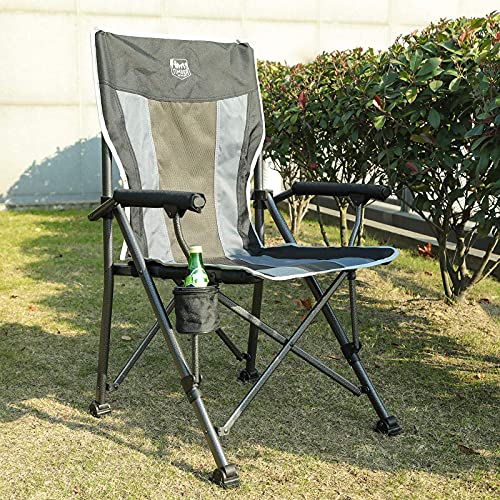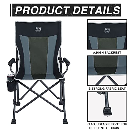 TIMBER RIDGE Folding Camping Chair, 150kg High Back Portable Camping Chair with Cup Holder, Hard Armrests, for Camping, Picnic, Garden, Balcony