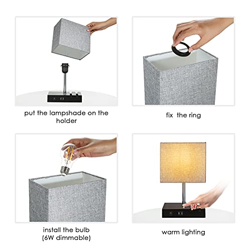 With its chic grey fabric shade and minimalist black base, this lamp is designed to complement any decor style. Whether placed in a bedroom, living room, or office, it adds a touch of elegance and practicality.