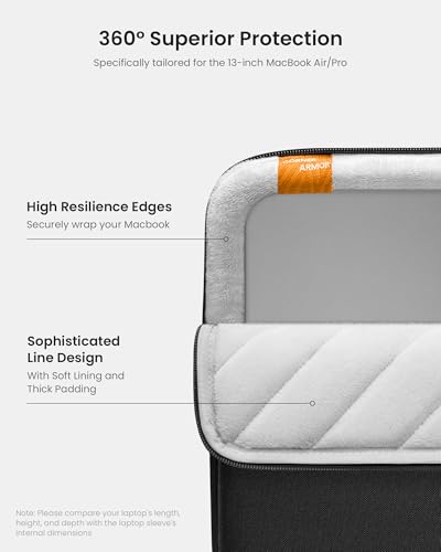 - Introducing the tomtoc 360° Protective Laptop Sleeve – the ultimate protection for your 13-inch MacBook Air and MacBook Pro. Engineered with Military-Grade protection, this sleeve is designed to withstand the harshest conditions, from sudden drops to vibrations. Thanks to our innovative CornerArmor Technology and high-density soft padding, your laptop will be shielded from all angles, ensuring it remains safe and sound during your travels.