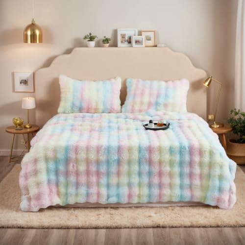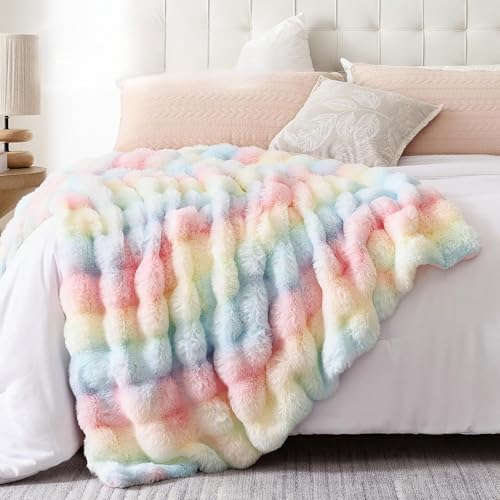 Topchances Fluffy Fleece Throw Blanket,Super Soft Cosy Warm Blankets Plush for Sofa,Lightweight Fuzzy Cozy All Seasons Large Throws for Bed Sofa Couch Home Decor(Rainbow,100×160cm)
