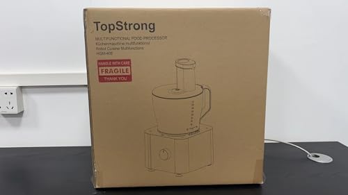 The TopStrong Food Processor features an impressive 1100W motor made from 100% copper, ensuring durability and efficiency in processing a variety of food materials.