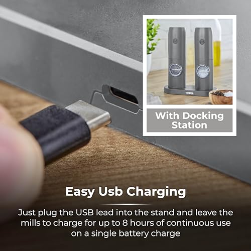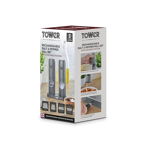 Plus, with a robust guarantee from Tower, you can purchase with confidence, knowing that you're investing in quality. Transform your dining experience today with the Tower Electric Salt & Pepper Mills—where functionality meets style!