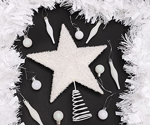 - Elevate your festive décor with the stunning Toyland® 26cm Glittery White Tree Top Star. Measuring a perfect 30cm x 20cm, this eye-catching star is not just a Christmas tree topper; it’s a statement piece that transforms any setting into a winter wonderland. Covered in shimmering glitter, it captures the light beautifully, adding a magical sparkle to your holiday celebrations. Imagine placing this exquisite star atop your Christmas tree, instantly creating a focal point that will leave your guests in awe.