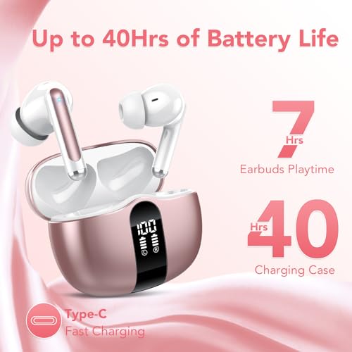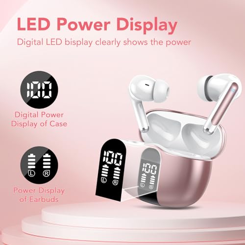 Wireless Earbuds, Bluetooth 5.3 Headphones In Ear with 4 ENC Noise Cancelling Mics, LED Display Bluetooth Earbuds, Mini Ear Buds Deep Bass HiFi Stereo, 40H Wireless Earphones IP7 Waterproof for Sport