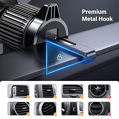 The innovative folding back design prevents the holder from blocking your vehicle's air vents, ensuring that you can enjoy the comfort of air conditioning while also protecting your phone from unwanted airflow that could diminish its lifespan. The mount's robust metal-embedded hook provides exceptional stability, meaning you can navigate bumpy roads or sharp turns without worrying about your phone slipping or falling.