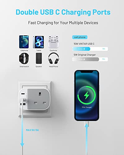 Picture this: you're on a business trip in Germany, and your phone is on the brink of dying after a busy day of meetings. With the VINTAR adapter, you can plug in your device and charge it while also powering your laptop and tablet—all at the same time! Its compact design means it fits snugly in your luggage without taking up valuable space, and the dual fast-charging USB ports ensure you spend less time tethered to a wall socket and more time enjoying your travels.