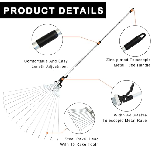 Imagine effortlessly gathering leaves or debris without straining your back, thanks to the comfortable grip and adjustable lengths. The smooth adjustment feature allows you to modify the rake quickly, making it suitable for both narrow flower beds and expansive lawns.