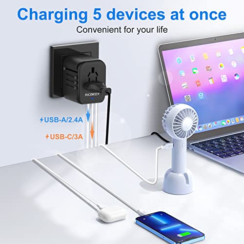 With compatibility across 224 countries, this adapter is your go-to gadget for international adventures. The convenience of 2 USB-C ports combined with 2 USB-A ports allows you to charge multiple devices quickly, which is a lifesaver when you're on the move. Picture this: you're in a bustling airport, and you need to charge your phone, tablet, and camera all at once. The RICOKEY adapter has you covered without needing to search for multiple plugs.