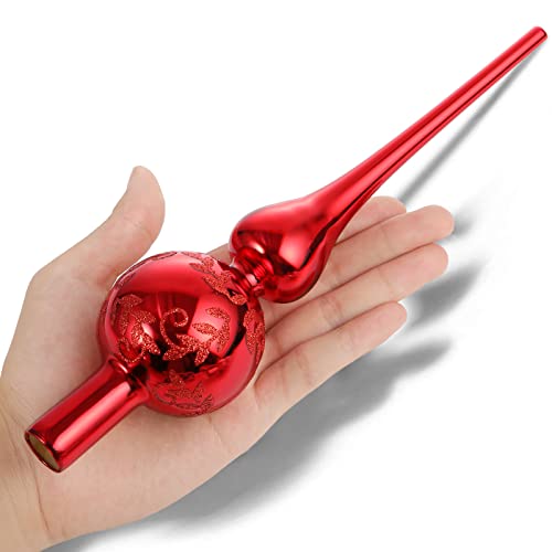 Glass Christmas Tree Topper, Red Tree Topper, UNOLIGA 26cm Vintage Handblown Glass Xmas Tree Topper Decorations