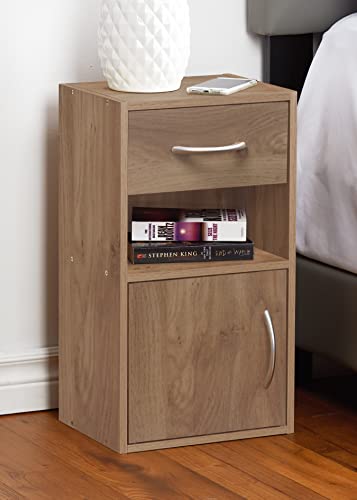 With its oak finish, the cabinet adds a touch of warmth and elegance to your space. The thoughtful design includes one drawer and one door, along with an open shelf, allowing you to keep your essentials organised and within easy reach.