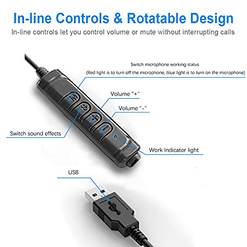 USB Headset with Microphone for PC Laptop Office Headset with Mic Adjustable Noise Cancelling Headphones with In-Line Control & Mute Computer Headsets for Call Center Work Skype Chat Online Courses