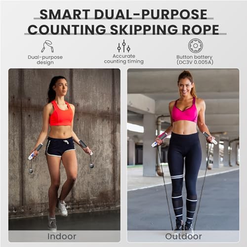 The digital counter tracks your jumps, workout time, and calories burned. It provides reminders when you reach your set goals, helping you stay motivated.