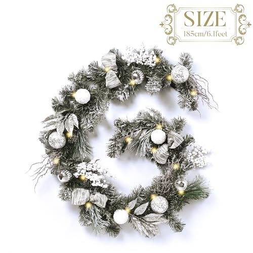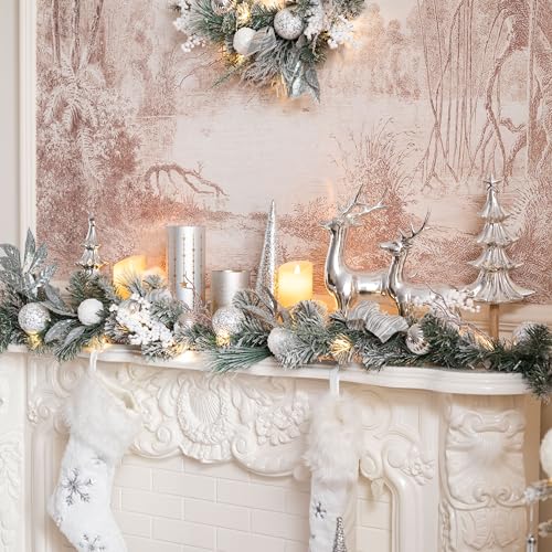 Imagine draping this beautiful garland across your mantle or wrapping it around your staircase; its sophisticated blend of silver and white baubles, lush foliage, and charming pine cones creates a striking visual that is sure to impress your guests. The pre-attached lights allow for immediate enjoyment, letting you focus on what truly matters—spending time with loved ones.