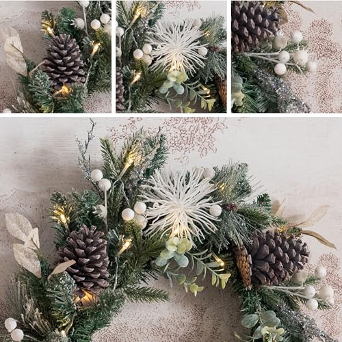 Imagine welcoming guests with this delightful wreath hanging on your front door, its lifelike pine cones and berries creating an inviting atmosphere. The pre-lit LED lights not only enhance the wreath's beauty but also provide a warm glow that complements family gatherings and festive celebrations.