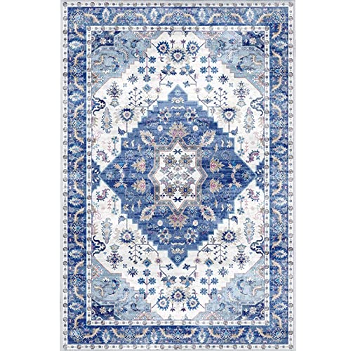 Vamcheer Vintage Washable Rugs for Living Room - Classic Soft Faux Short Pile Area Rugs for Bedroom Dining Room Traditional Carpet for Office Non Slip Non Shedding Large Blue Rug, 160x230CM