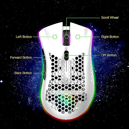 - Introducing the VEGCOO Gaming Mouse – the ultimate wireless companion for gamers and professionals alike! This innovative mouse features a lightweight honeycomb shell design that not only enhances air circulation but also provides a stylish look, making it a must-have for your gaming setup. Say goodbye to discomfort during those long gaming sessions; the ergonomic design ensures a snug fit in your hand, providing maximum comfort whether you're gripping it in a traditional or claw style.
