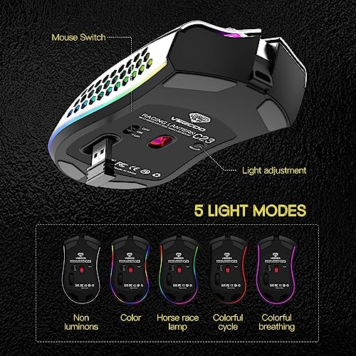 VEGCOO Gaming Mouse, Rechargeable Wireless Mouse with Honeycomb Wireless Gaming Mouse with RGB Light/Silent Click/Adjustable DPI, Optical Computer Mouse for Laptop PC Computer