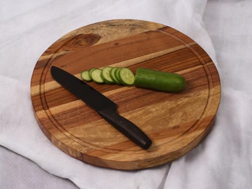 - Discover the perfect blend of practicality and elegance with the Vesta Homes Wooden Round Chopping Board, a stunning addition to your kitchen essentials. Crafted from premium acacia wood, this chopping board not only serves as a robust food prep surface but also as a striking centrepiece that enhances your kitchen's aesthetic appeal. With generous dimensions of 38 x 38 x 2.5 cms, you have ample space to slice, dice, and prepare your favourite ingredients, from fresh vegetables to artisanal cheeses.