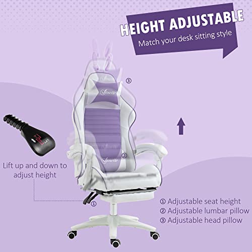 Vinsetto Racing Gaming Chair, Reclining PU Leather Computer Chair with Removable Rabbit Ears, Footrest, Headrest and Lumber Support, Purple