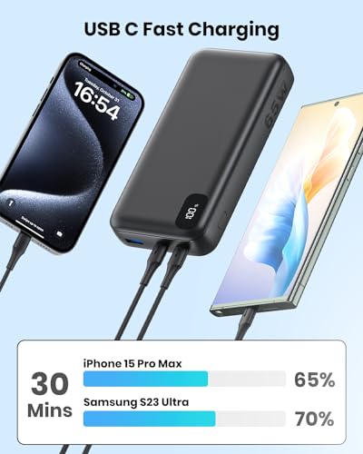 Not only is it the perfect companion for your laptop, but its massive 20000mAh capacity lets you recharge your iPhone 15 up to four times or your tablet twice. Whether on a work trip or enjoying a weekend getaway, this power bank has you covered.