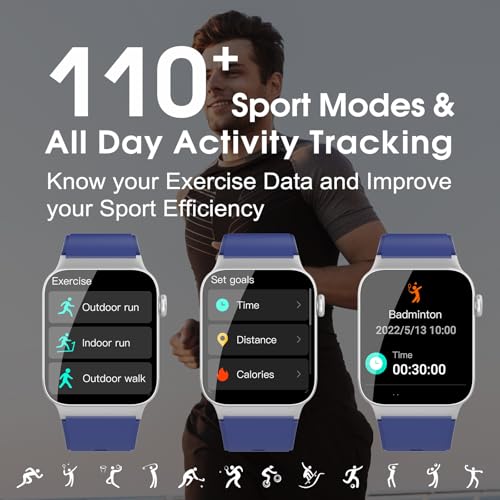 VKROBAG Smart Watch for Men Women Answer/Make Calls, 1.85" HD Smart Watches with 110+ Sport Modes, Fitness Watch with Heart Rate Sleep Monitor, IP68 Waterproof Smartwatch for Android iOS, Dark Blue