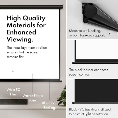 The installation process is straightforward, making it easy for anyone to set up in just minutes. Plus, with the option to mount it on either the wall or ceiling, you can adapt it to fit your space perfectly. The soft-close mechanism ensures that your screen is protected during storage, allowing you to enjoy countless movie nights without worrying about wear and tear.