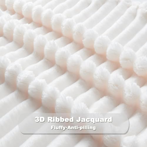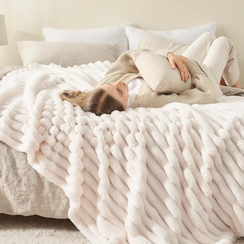 Wajade Fluffy Fleece Blanket Faux Fur Bed Throw Super Soft Warm Large Blanket for Bed Sofa Car, White 127x153CM