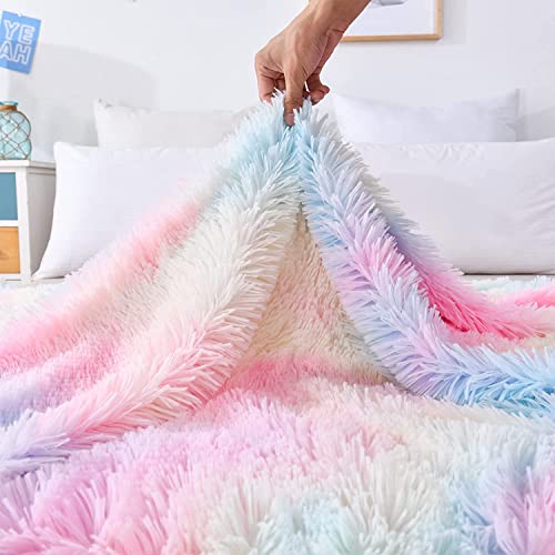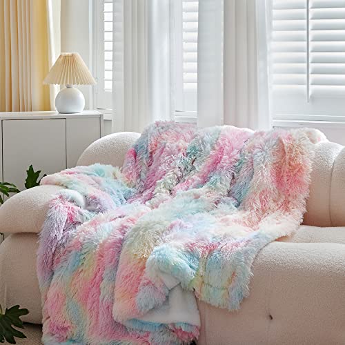 Wajade Rainbow Throw Blanket Faux Fur Bed Throw Super Soft Warm Large Blanket for Bed Sofa Car (130x160cm)