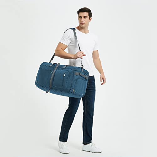 WANDF Travel Duffle Bag 65L Shoes Compartment Foldable Overnight Weekender Bag Carry On Bag for Men Women (Blue)