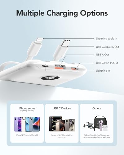 Imagine you’re at a festival, snapping photos and sharing updates on social media, only to realise your phone is running low on battery. With the WeeFancy power bank, you can quickly recharge your iPhone from 0% to 50% in just 30 minutes, ensuring you never miss a moment. The convenience of built-in cables means you won’t have to worry about carrying extra cords; it’s all in one compact package!