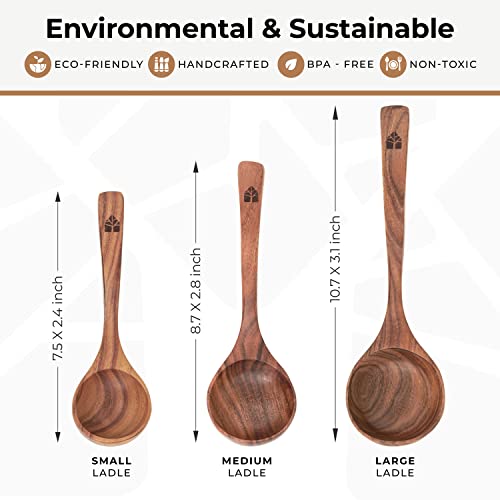 - Introducing the Wooden Ladle Spoon Set from Woodenhouse Lifelong Quality, the ultimate solution for all your cooking needs! This exquisite set includes three beautifully crafted ladles in varying sizes—large (10.7 x 3.1 inches), medium (8.7 x 2.8 inches), and small (7.5 x 2.4 inches)—perfect for stirring, serving, and dishing up your favourite meals.