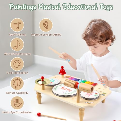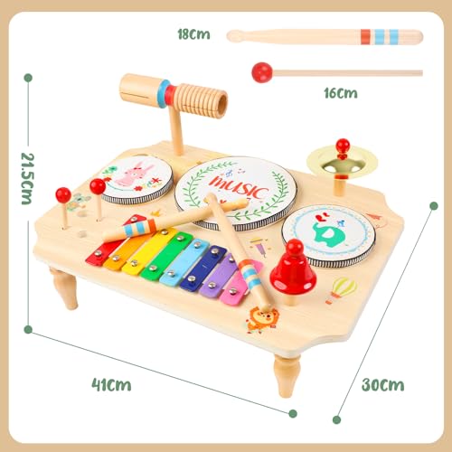 With a variety of instruments, including a xylophone, drums, and cymbals, your child will have endless opportunities to explore sound and rhythm. Each component is crafted from safe, natural wood and coated in non-toxic paint, ensuring that your little one can play safely without worry.
