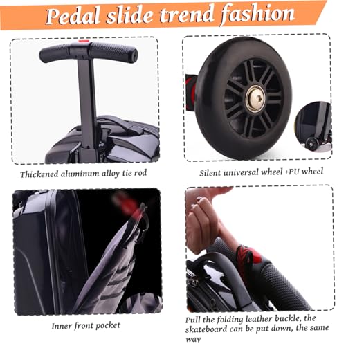 XJKLBYQ Scooter Luggage Carry On Scooter Suitcase for Kids,Large Capacity Foldable Ride On Luggage Scooter with Telescopic Handle Zippered Multi-Pocket Scooter Luggage for Travel