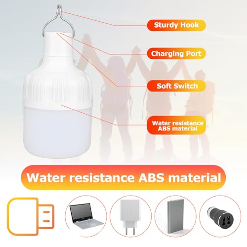 The IPX4 waterproof rating means these lights can withstand splashes and rain, making them perfect companions for unpredictable weather. And with the handy hook design, you can effortlessly hang them in your tent or from a tree branch, giving you that much-needed hands-free light.