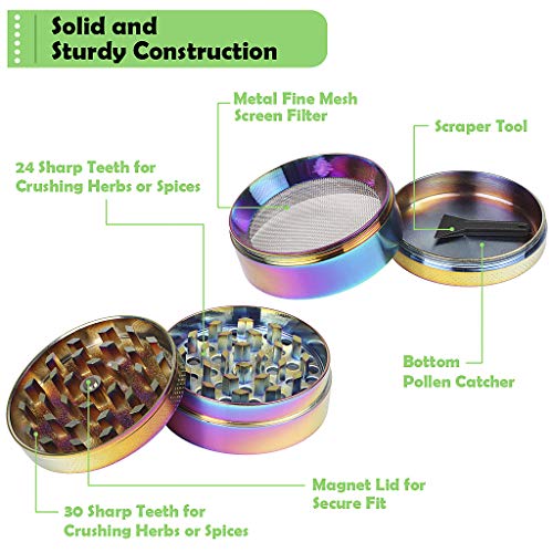 Crafted from robust zinc alloy, the XYGK Herb Grinder is designed for durability and ease of use. Its unique iridescent rainbow colours add a pop of personality to your kitchen, making it as visually appealing as it is functional.