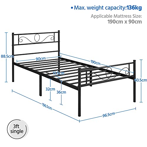 Are you looking for a bed that combines style, durability, and functionality? The Yaheetech 3ft Single Metal Bed Frame is the ideal solution for those who want to enhance their bedroom without compromising on space. Its elegant design, featuring a charming cast metal scroll headboard and footboard, adds a touch of sophistication to any room.