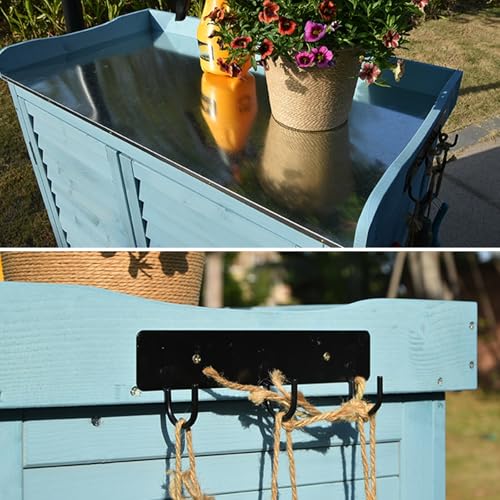 Imagine having a dedicated area where all your gardening tools are within arm's reach, neatly organised and easy to access. With the added hooks for hanging shovels and brooms, you’ll find that your gardening tasks become more efficient and enjoyable. The durable metal tabletop is perfect for potting plants, while the weather-resistant features protect your investment against the elements.