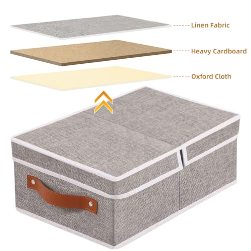 YheenLf Storage Bin with Double-Open Lid, 3-Pack Decorative Fabric Organizer Container Baskets for Organizing with Handles for Shelves, Collapsible Clothes Boxes, Gray, 33×23×14 cm