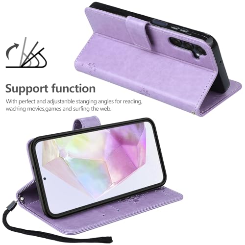 - Introducing the YIRSUR Purple Leather Flip Wallet Case, designed exclusively for the Samsung Galaxy A35 5G, combining elegance with functionality. This stylish case not only protects your device but also doubles as a convenient wallet, featuring multiple card slots and a foldable phone holder. Whether you're on the go or enjoying a hands-free video call, the adjustable angles allow you to find the perfect viewing position with ease.