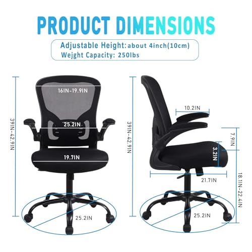 Youhauchair Office Chair, Breathable Mesh Swivel Desk Chair, Lumbar Back Support Ergonomic Office Chair, Computer Chair Office Chairs with Flip-up Armrests, Black