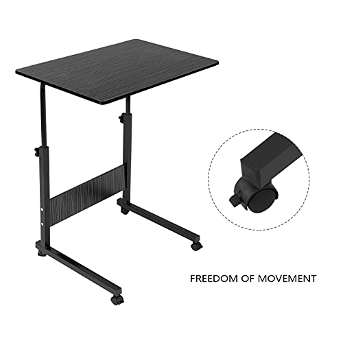 Youyijia Height Adjustable Mobile Table 40x60-(67-80) cm Height Adjustable Laptop Table Workstation Laptop Overbed Multi Table with Metal Frame & Rolling Castors - Black